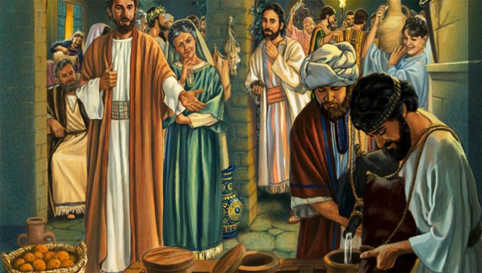 Demi menunjukkan arti terbesar dari kehadiran Yesus itulah, Maria sebagai ibu, dengan keyakinan teguh menasihatkan kepada para pelayan, “Apa yang dikatakan kepadamu, buatlah!” Seturut nasihat bunda Maria mereka menuruti perintah Yesus, mengisi enam tempayan dengan air. Ketaatan kepada nasihat seorang ibu beriman dan bermohon, membuat mereka menyaksikan keselamatan terjadi di tengah keluarga. Yesus mengubah air menjadi anggur demi keselamatan dan kebahagiaan keluarga yang mengundang-Nya.