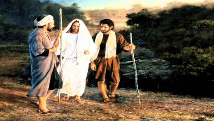 Dalam bacaan Injil, dikisahkan lagi perjumpaan antara dua orang murid dengan Yesus, dalam perjalanan ke Emaus. Dalam perjumpaan itu, kedua murid tersebut merasa sangat kehilangan harapannya setelah Yesus wafat. Mereka berjalan sambil bercakap-cakap. Harapan bahwa Yesus yang merupakan anak Allah, kini telah mati di palang salib dengan tidak berdaya. Tetapi sesudah makan malam bersama di Emaus, sebuah mukjizat terjadi. Iman dan pengharapan terhadap Yesus Kristus, tumbuh kembali ketika mereka melihat Yesus memecahkan roti dan meminum anggur dan ada bersama-sama mereka.
